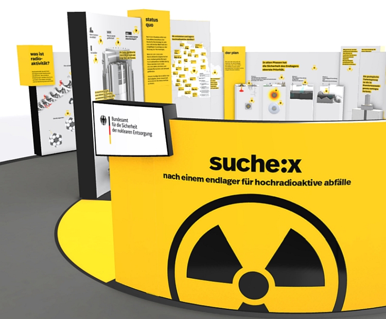 Bis zum Jahr 2031 sucht die Bundesrepublik Deutschland einen Standort für die Endlagerung ihrer hochradioaktiven Abfälle. Die Ausstellung „suche:x“ des Bundesamtes für die Sicherheit der nuklearen Entsorgung (BASE) bietet einen schnellen Überblick zu wesentlichen Aspekten der Suche nach einem Endlager für hochradioaktive Abfälle in Deutschland.