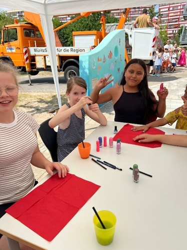 Durch das Einbeziehen aller regionalen Netzwerkpartner konnten zahlreiche Freizeitaktivitäten für die Kinder angeboten werden. Der Andrang beim „Riesen-Seifenblasen-machen“ nahm nicht ab. Die Feuerwehr hatte alle Hände voll zu tun, die Kleinen beim „Feuer löschen“ zu unterstützen. Zum krönenden Abschluss gab es dann einen Riesen-Rasensprenger, der zum Durchlaufen einlud. Nicht alle Eltern waren auf diesen Fall vorbereitet, aber alle Kinder hatten gigantischen Spaß.