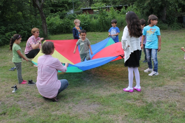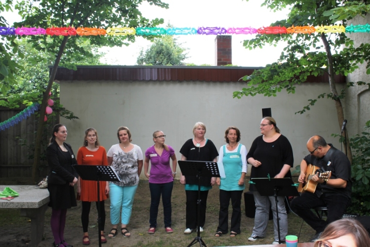 Am Sonnabend dem 9.Juli wurde von der Kirchgemeine St. Georgen, „müritz hilft“ und der Stadt Waren (Müritz) ein interkulturelles Sommerfest im Hof des Gemeindehauses in der Güstrower Straße organisiert. Neben internationalen kulinarischen Finessen standen der Chor der evangelischen Kirchgemeinden, ein DJ mit bester Musik im Gepäck, syrischer Tanz, bunte Spielaktionen am Lagerfeuer für Kinder und eine kleine Rede der Geflohenen auf dem Programm. Schon bei den Vorbereitungen hatten die Initiatorinnen tatkräftige Unterstützung. Eine Gruppe Syrerinnen bereitete gemeinsam mit dem Team des Café International u.a. typisch syrische Speisen, es wurde Halal gegrillt und alles farbenfroh dekoriert. Die Pfadfinder sorgten für Stockbrot am Feuer. Und gutes Wetter war auch bestellt. Am allerschönsten, da sind sich alle einig, war es, die Menschen so entspannt und fröhlich in dieser geschützten Atmosphäre beisammen zu sehen. An diesem Tag gab es keinen Grund, aus Vorsicht oder Unsicherheit Distanz zu einander zu wahren, denn alle Anwesenden - und das waren nicht weniger als 150 Menschen - leben kulturelle Vielfalt und ein friedliches Miteinander. So wurden neue Kontakte geknüpft, Freunde gefunden und vor allem viel gelacht und getanzt. Einen herzlichen Dank an alle Mitwirkenden und an alle unsere Gäste für ein gelungenes Sommerfest.