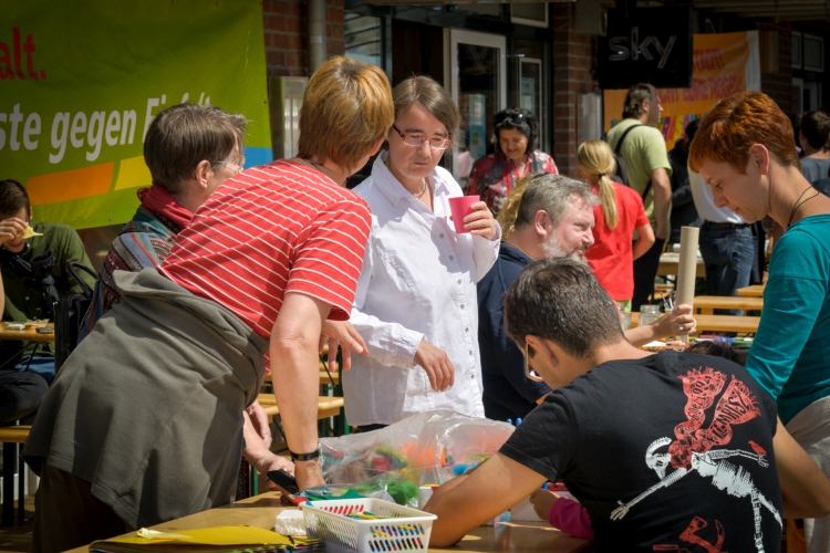 „Vielfalt. Das Beste gegen Einfalt“, hieß es ab halb elf im Hafenkuddel. Vertreterinnen der Initiative „müritz hilft“ und Engagierte vor Ort organisierten das wöchentliche Café International aus gegeben Anlass im weit größeren Umfang. Viele Gäste unterstützten dabei gemeinsam mit den Geflohenen und allen Interessierten ein buntes Miteinander für den Frieden zu halten und setzten ein Zeichen. Natürlich gab es reichlich Unterhaltung für die Kinder und alle, ganz gleich ob groß oder klein, waren voll mit im Schwung als die Storch Heinar Band ihre Positionen musikalisch krawallig darbot. Auch die anwesenden Politikerinnen unterstrichen, wie wichtig es ist sich gegen Rassismus, Hetzte und Menschenfeindlichkeit und für die Demokratie einzusetzen. Besonders freute es Manuela Schwesig begrüßen zu dürfen, vor allem, weil Sie in einer Gesprächsrunde den Menschen vor Ort die Gelegenheit gab ihre Fragen anzubringen. Aber nicht nur Sie zeigte Flagge gegen rechtes Gedankengut, sondern u.a. auch Bürgermeister Norbert Möller, der Leiter der Europäischen Akademie Jörn Mothes, Nadine Julitz, Vertreterinnen der Linke, de SPD und der Grünen, die Integrationslotsin der Stadt, die Kirchgemeinden, das Regionalzentrum für demokratische Kultur und die Partnerschaft für Demokratie der Stadt Waren (Müritz). Weiterhin war der Flüchtlingsrat MV mit einem bewegenden Beitrag über Syrien vor und während des Krieges vor Ort. Durch die Möglichkeit, Rückfragen zu stellen, wurde geholfen, Vorbehalte, Distanzen und Unwissen in der Bevölkerung abzubauen und wichtige Aufklärungsarbeit geleistet. Neben Musik, Gesprächsrunden und Präsentationen wurden natürlich auch, reichlich Leckereien angeboten. Viele konnten auf diese Weise das erste Mal syrisches Gebäck probieren. Im Anschluss wurde von den Kirchgemeinden zu einem ökumenischen Friedensgebet in die Marienkirche geladen. Allen Mitwirkenden, Unterstützerinnen und allen Gästen sei herzlich für den gelungenen Auftakt für die Vielfalt gedankt. Wir freuen uns so viele Menschen begrüßt haben zu dürfen, sollte es doch allen Menschen die für Demokratie und Frieden stehen ein Bedürfnis sein Rechtsextremismus und Menschenfeindlichkeit die Stirn zu bieten. Waren (Müritz) ist bunt!