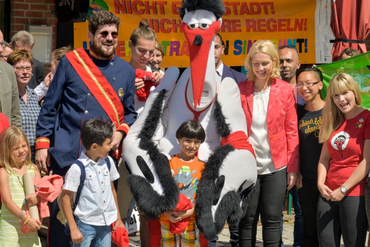 Wir hoffen, dass möglichst viele den Anstecker tragen und so seine Botschaft in die Stadt und in die Welt nehmen. Den ersten Anstecker erhielt Herr Möller, der die Idee immer unterstützt hat und dem sehr daran gelegen ist ein Zeichen für kulturelle Vielfalt in unserer Stadt zu setzten.