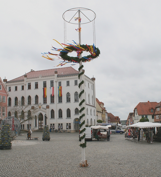 Vor dem Rathaus gibt es großzügigen Platz, um das Brautpaar gebührend zu feiern. Eine tolle Fotokulisse bieten dabei das Rathaus selbst und der Markt mit seinem Brunnen.