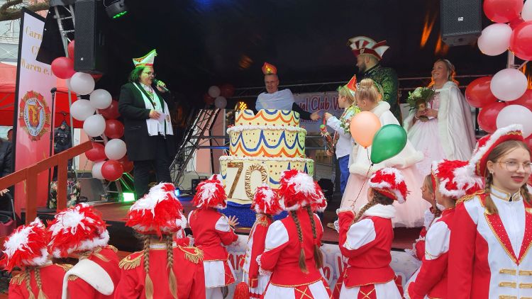 Alle Jahre wieder am 11.11. geht in Waren (Müritz) der Stadtschlüssel in die „Narrenhände“ über. Der Carneval Club Waren e.V. startet in diesem Jahr in seine 70. Session und gönnt sich als Bütt gleich mal eine riesige Torte. Dieses Kunstwerk kam erstmals bei der Schlüsselübergabe von Stadtoberhaupt Norbert Möller an das neue Prinzenpaar zum Einsatz. Der Bürgermeister – recht ansehnlich verkleidet als Geburtstagskerze – krönte das Objekt. Für die zahlreichen Zuschauer gab kurze Tanzvorführungen und auch Uschi ließ so einiges von sich hören. Die auf dem Neuen Markt versammelten Närrinnen und Narren starteten jedenfalls schwundvoll in die Jubiläumssession.