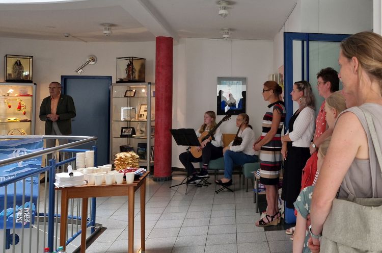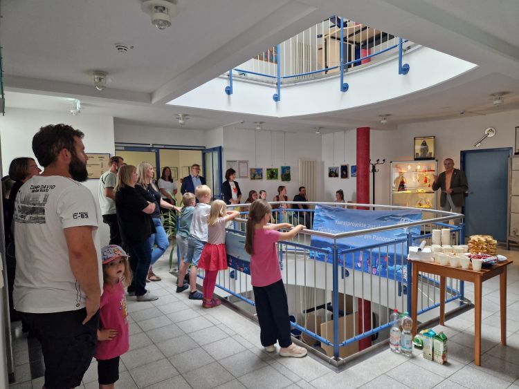 Seit dem 25. Juni 2025 sehen Sie hier Malereien, Drucke und Collagen aus kreativen Projekten des Kultur- und Kunstvereins mit Kindern unserer Stadt. Ganz viele kleine Künstler aus zwei Warener Kindergärten präsentieren ihre fröhlichen Werke im Treppenaufgang. Ebenfalls eingebunden sind Arbeiten aus früheren Projekten: