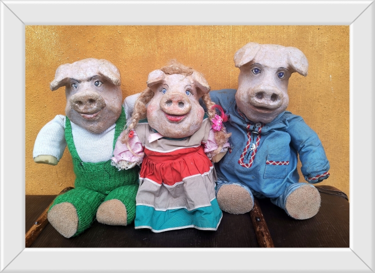 „Drei kleine Schweine“ Schwein sein ist schön - das wissen Heidi, Ekkehard und Eberhard ganz genau, denn sie sind drei kleine Schweine. Aber das Leben ist kein Spiel, vor allem, wenn Wolfgang, der Wolf, uneingeladen und mit „Schweinehunger“ zu Besuch kommt. Um ihn zu besiegen, müssen die drei Geschwister zusammen halten, denn nur gemeinsam sind sie stark. Ein Puppenspiel für Kinder ab 3 Jahren. EINTRITT FREI!